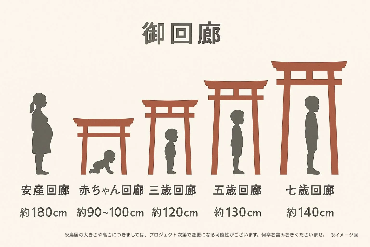 懐妊祈願・安産祈願・お宮参り・子供の成長を支える七五三回廊など日本初の回廊を目指します。